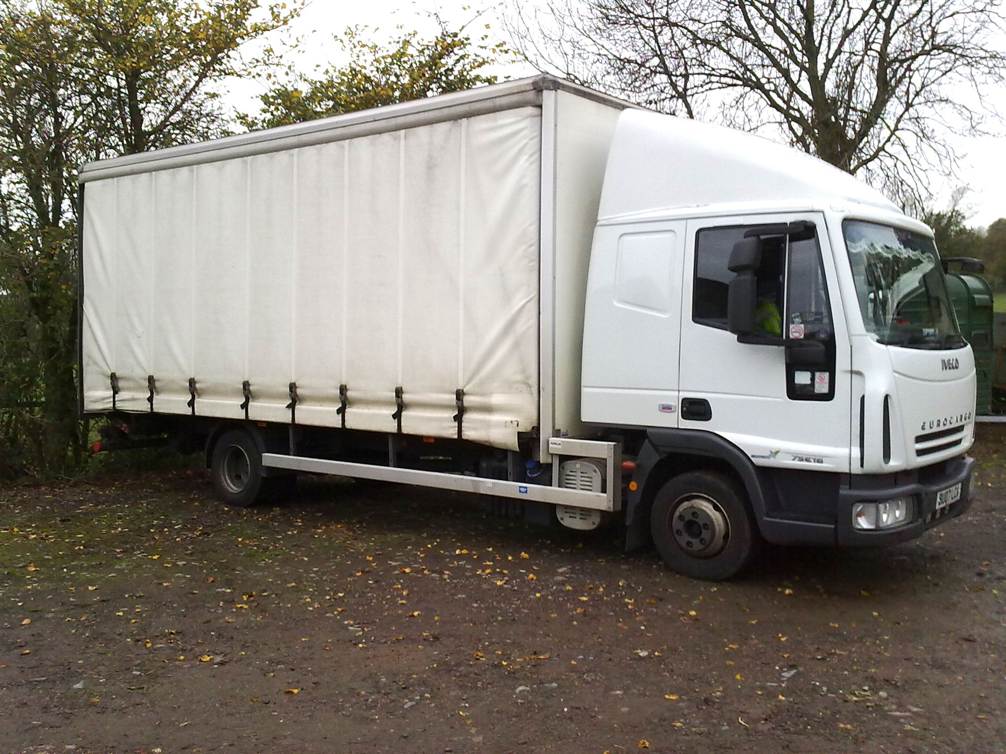 One of our 7.5 Tonne vehicles. Available for larger transportation needs. Equipped with tail-lifs and a 2 man crew.
